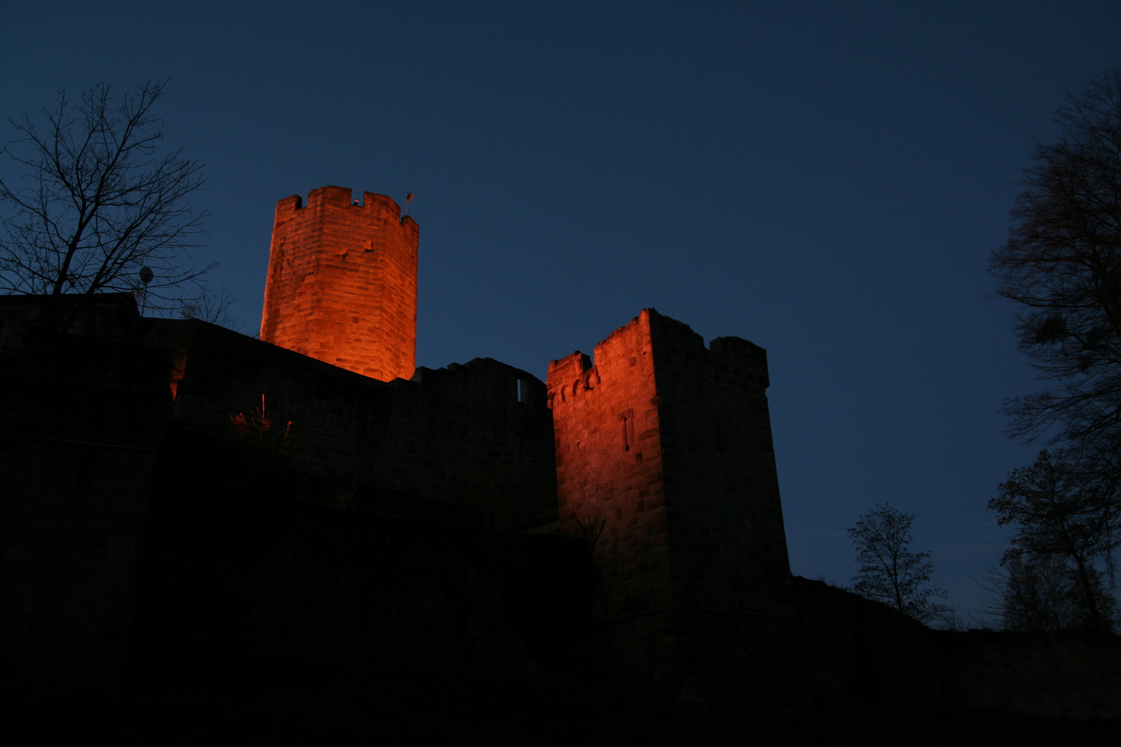 | Burg Steinsberg in der Abenddämmerung |