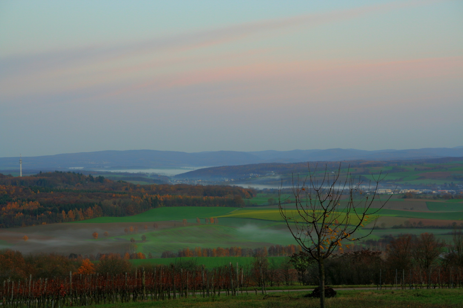 | Nachdem ich Mond und Venus abgelichtet hatte gings zurück zum Auto und da sah ich das Elsenztal vor mir in leichten
