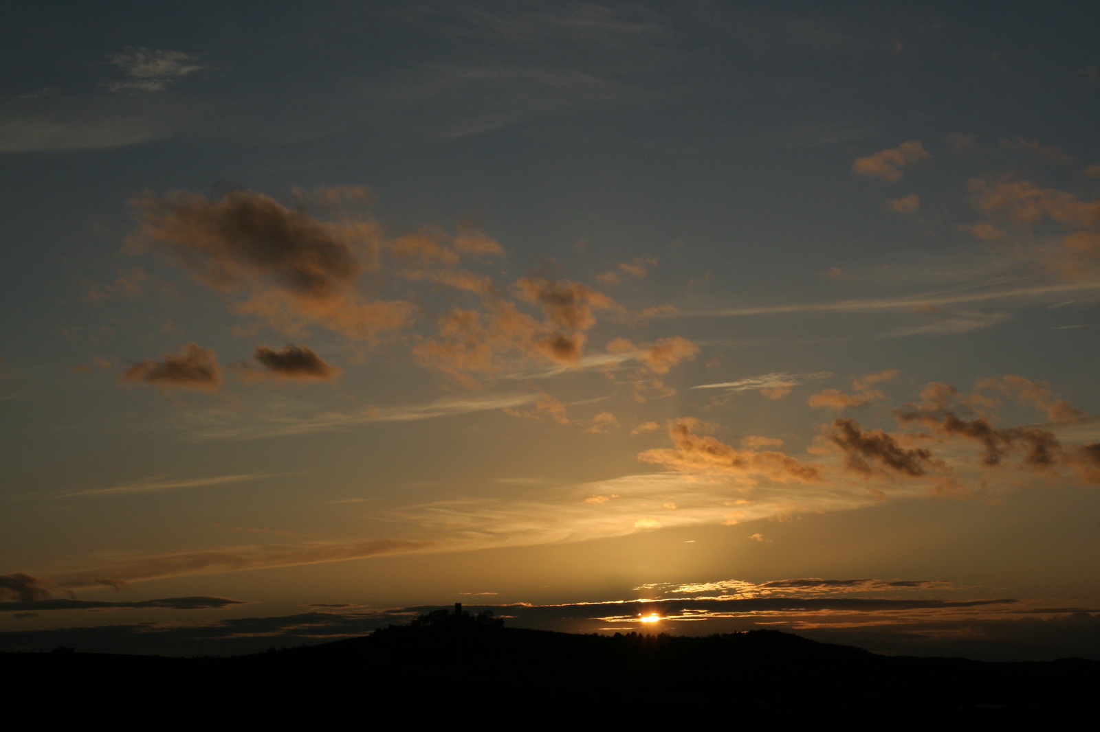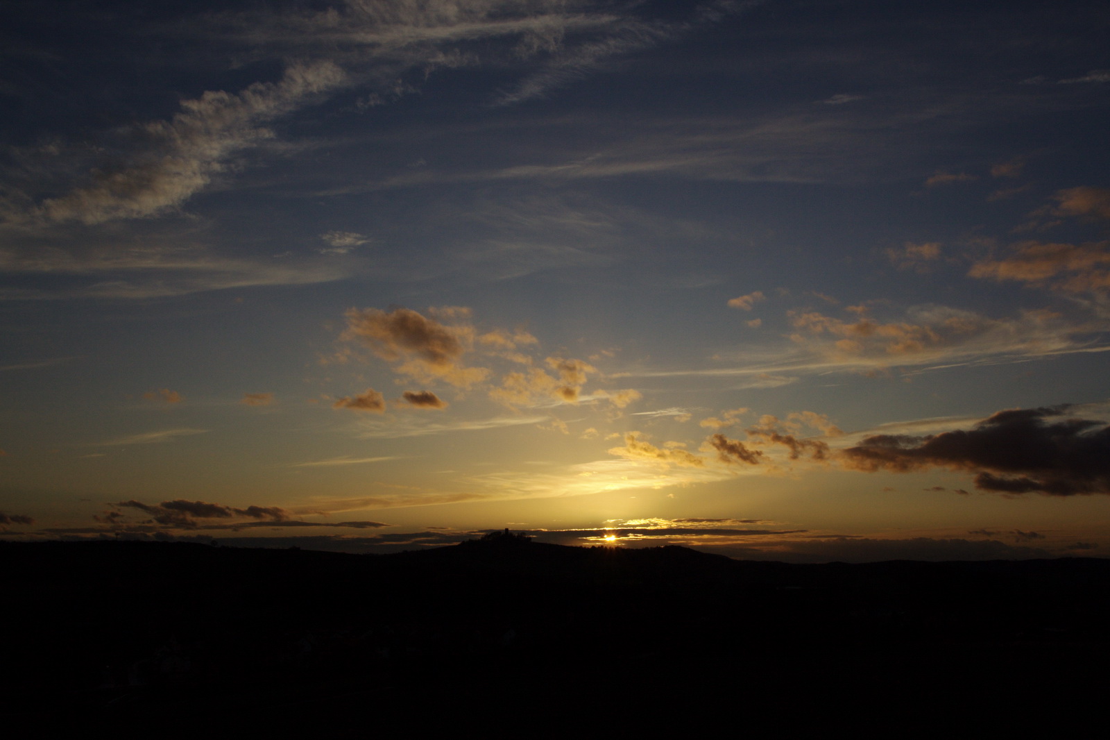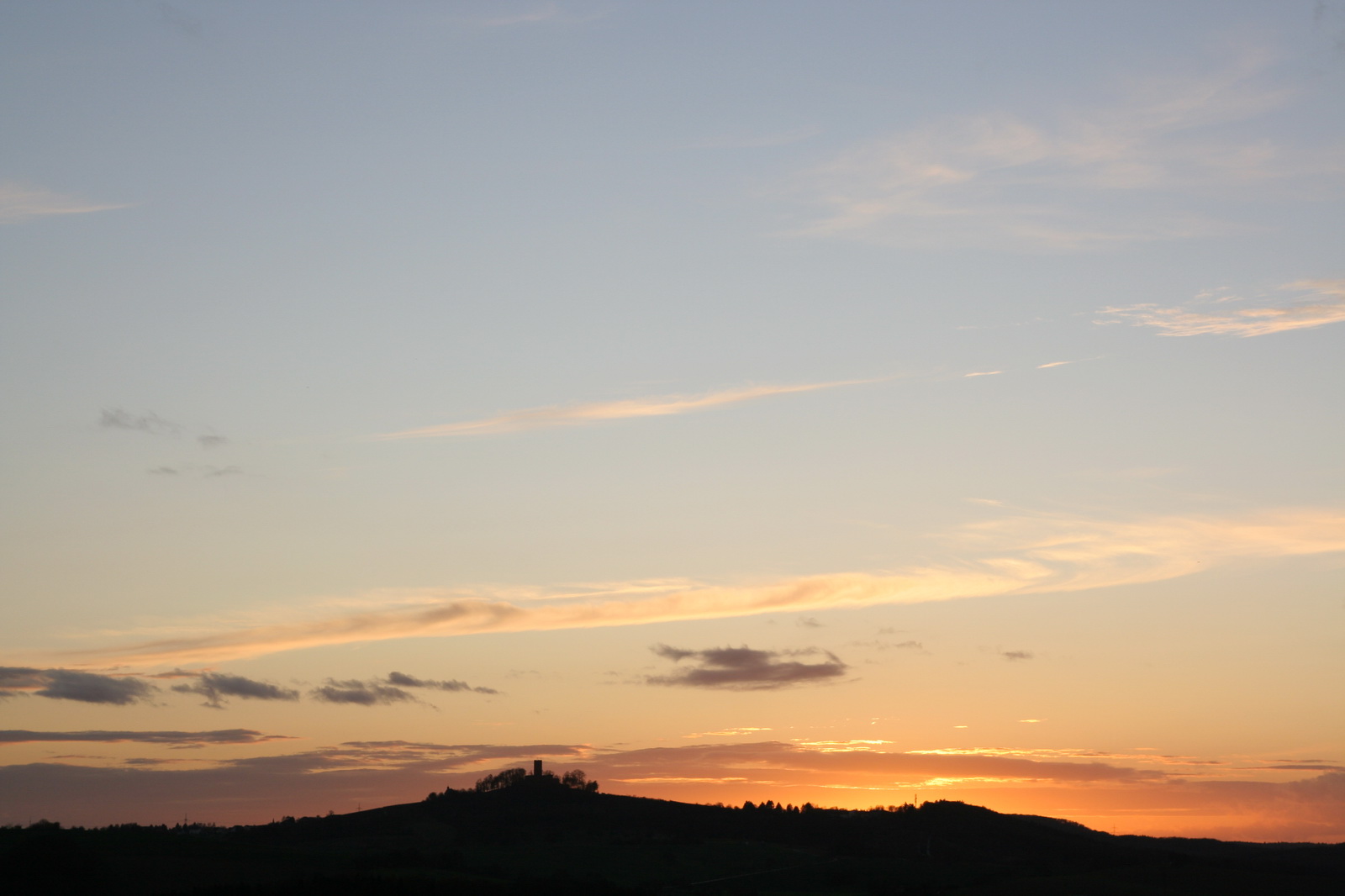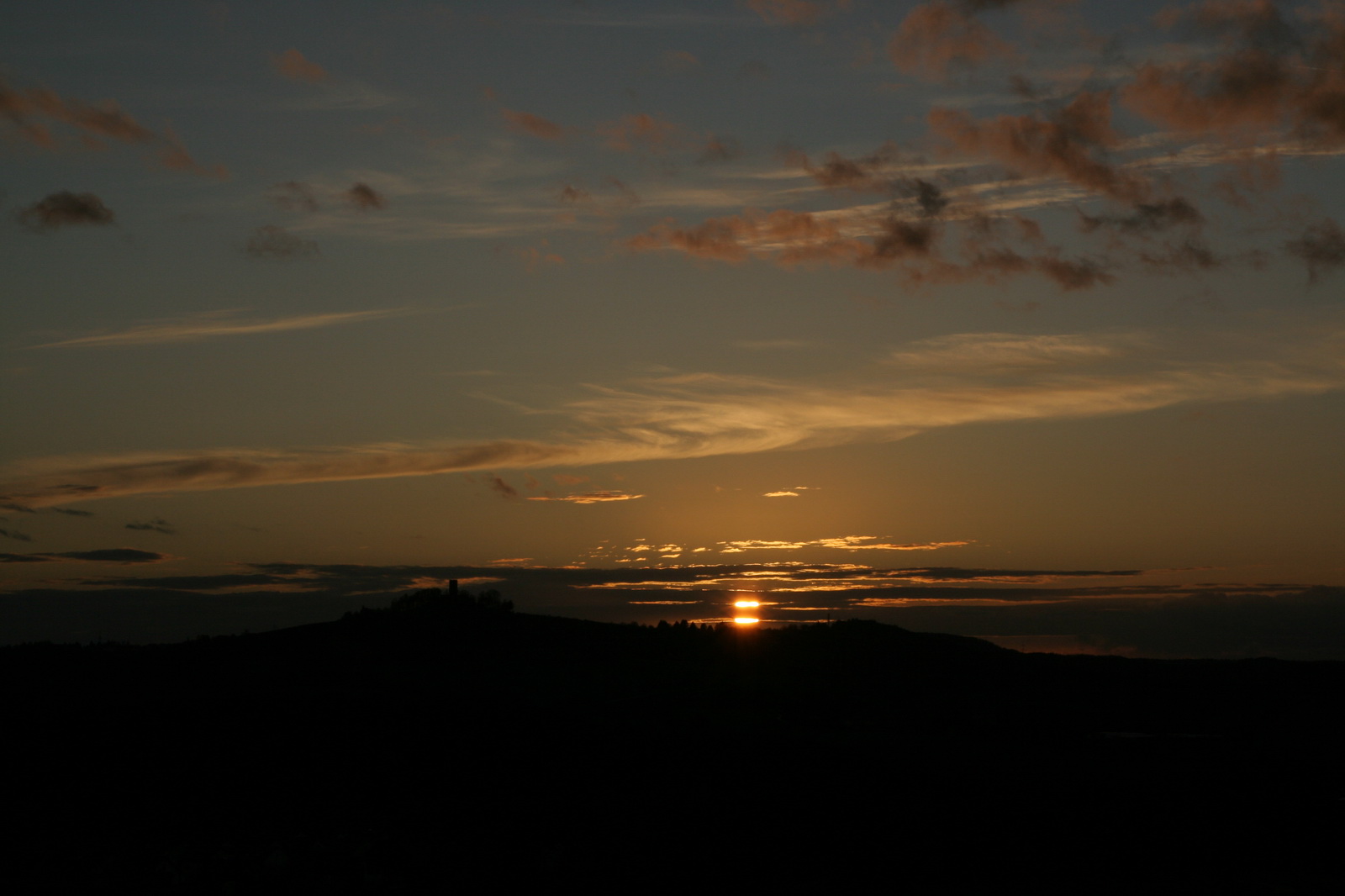 | Hier ist nun die Sonne hinter dem Hügel untergegangen und leuchtet von hinten der Berg an.