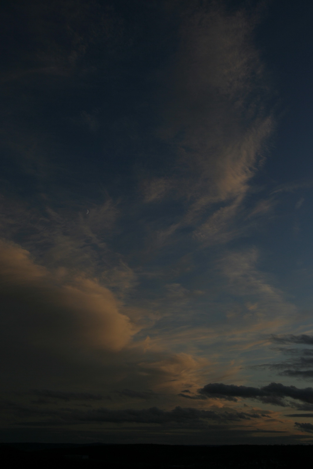 Wieder hatte ich einmal mehr das Glück, dass sich der junge Mond und Wolken, welche die bereits untergegange Sonne noch in