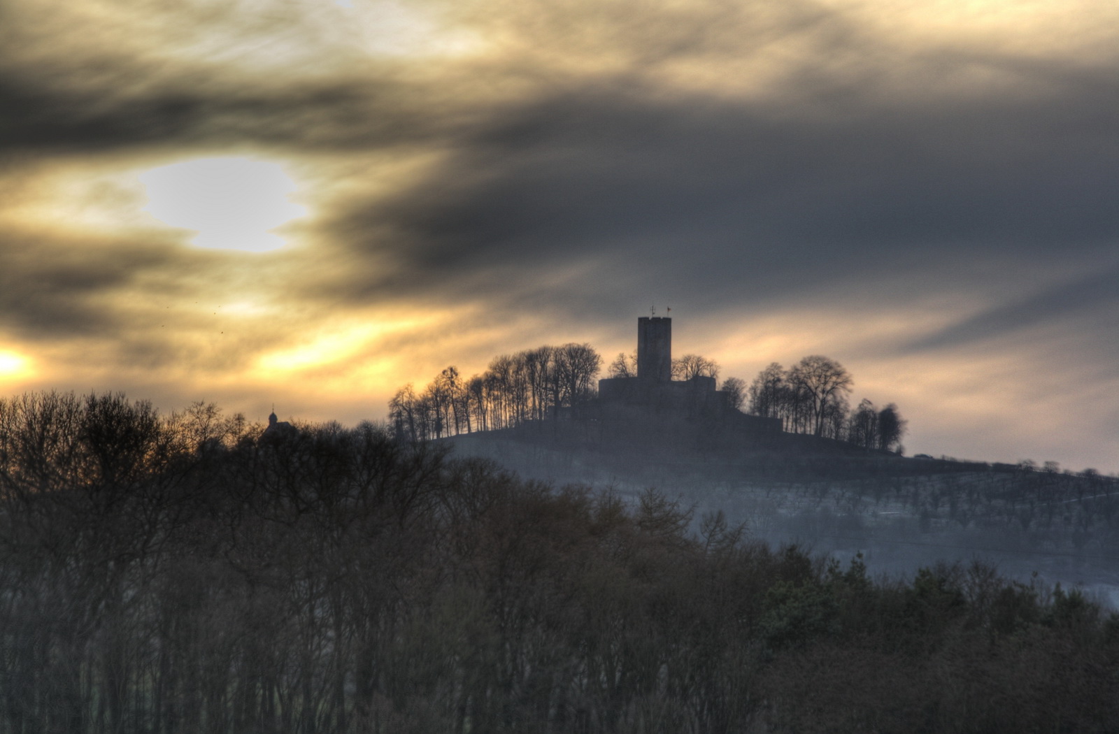 | Burg Steinsberg in der Abenddämmerung HDR |