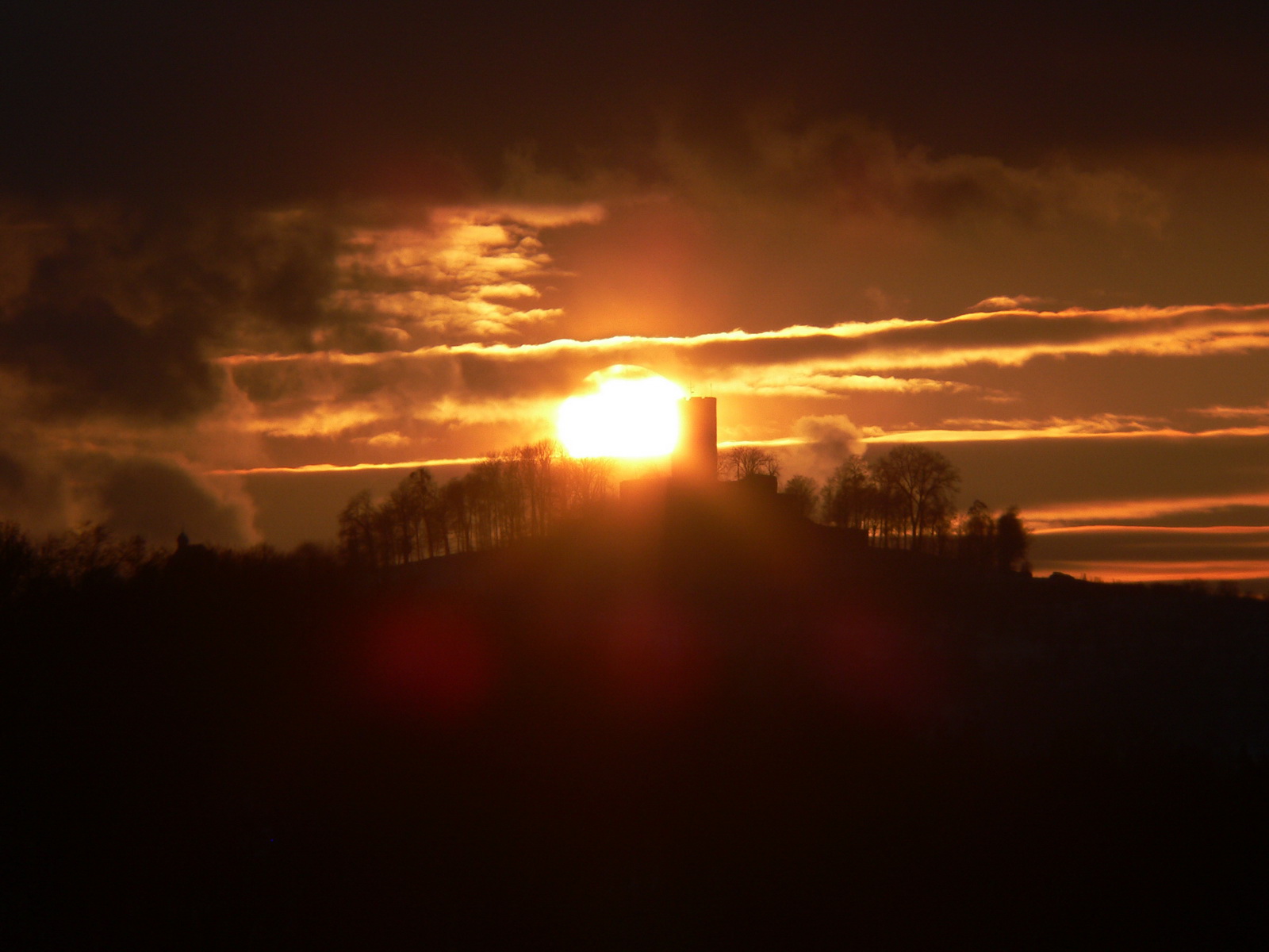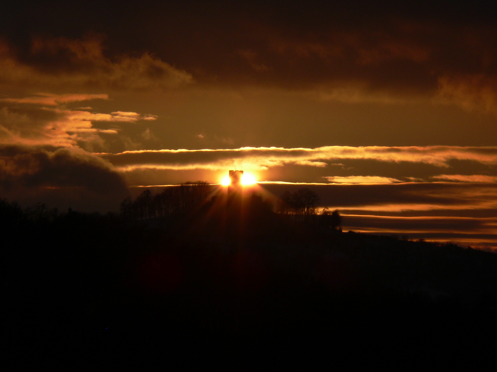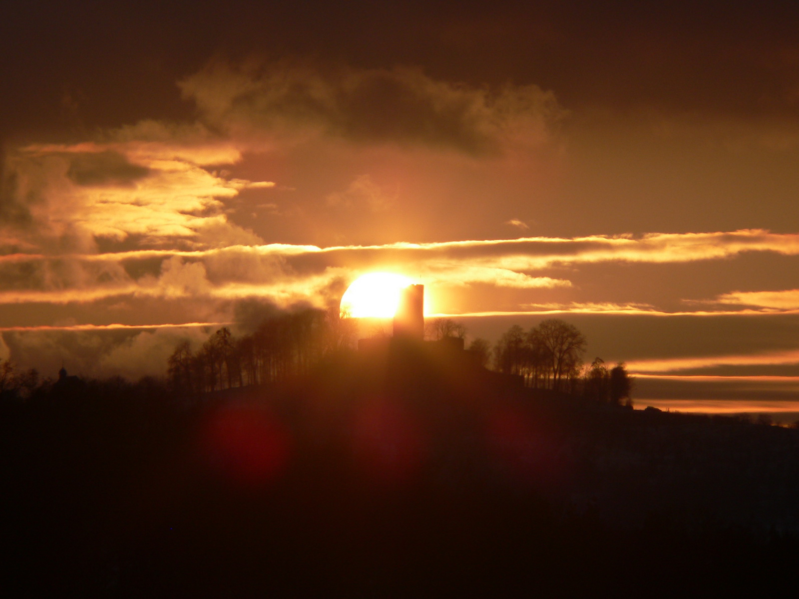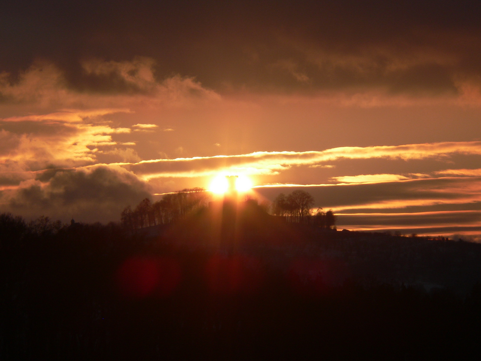 | Ich war mit meinem Sohn unterwegs, als die Sonne rechts neben dem Steinsberg unterging.