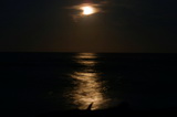 | Langsam färben sich die Wolken am Himmel rot und der Mond wird in Schleier gehült. |
